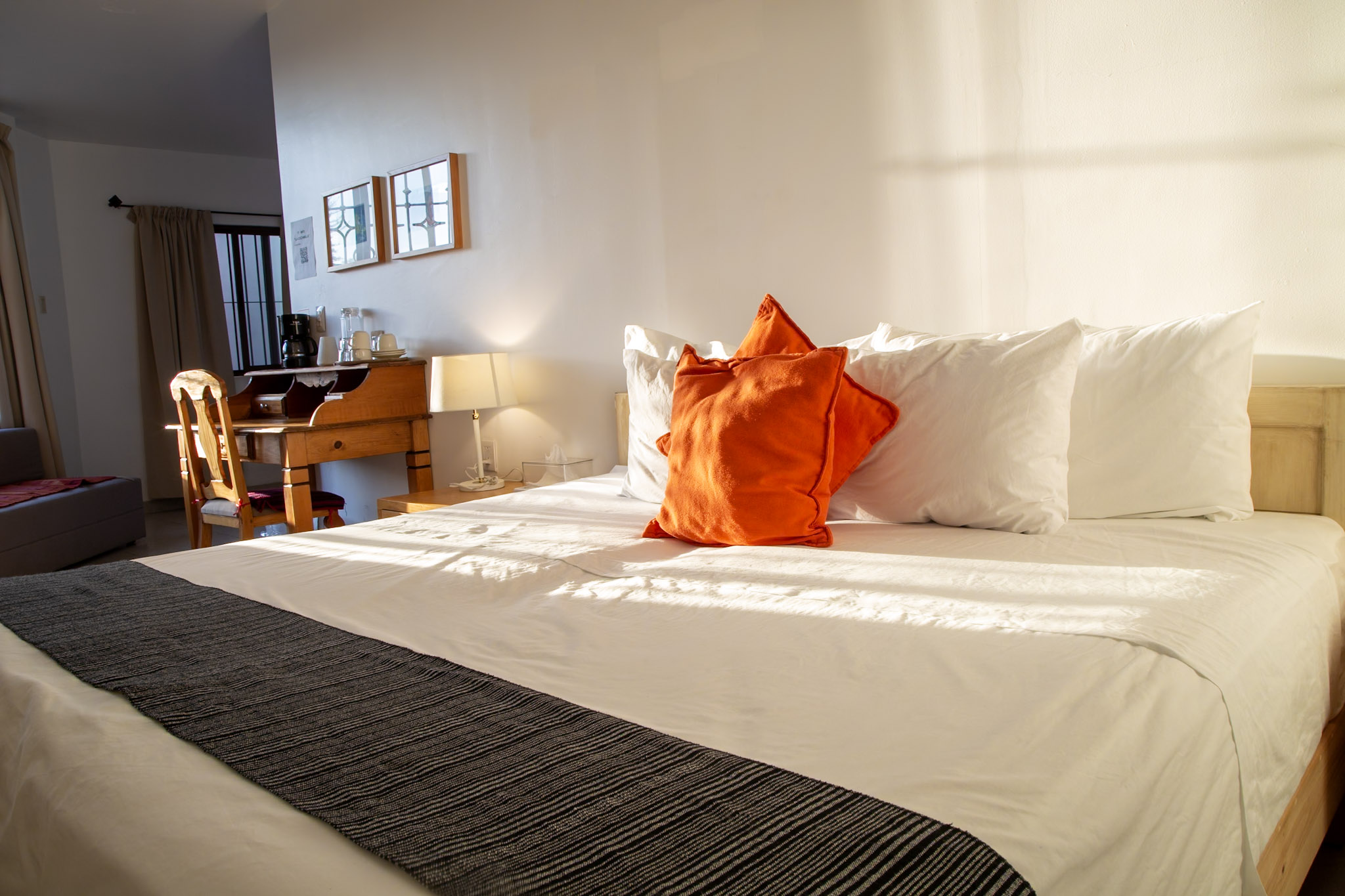 En La Cochinilla, la Junior Suite tiene su propio encanto. Aquí, la hospitalidad oaxaqueña se siente en cada rincón.