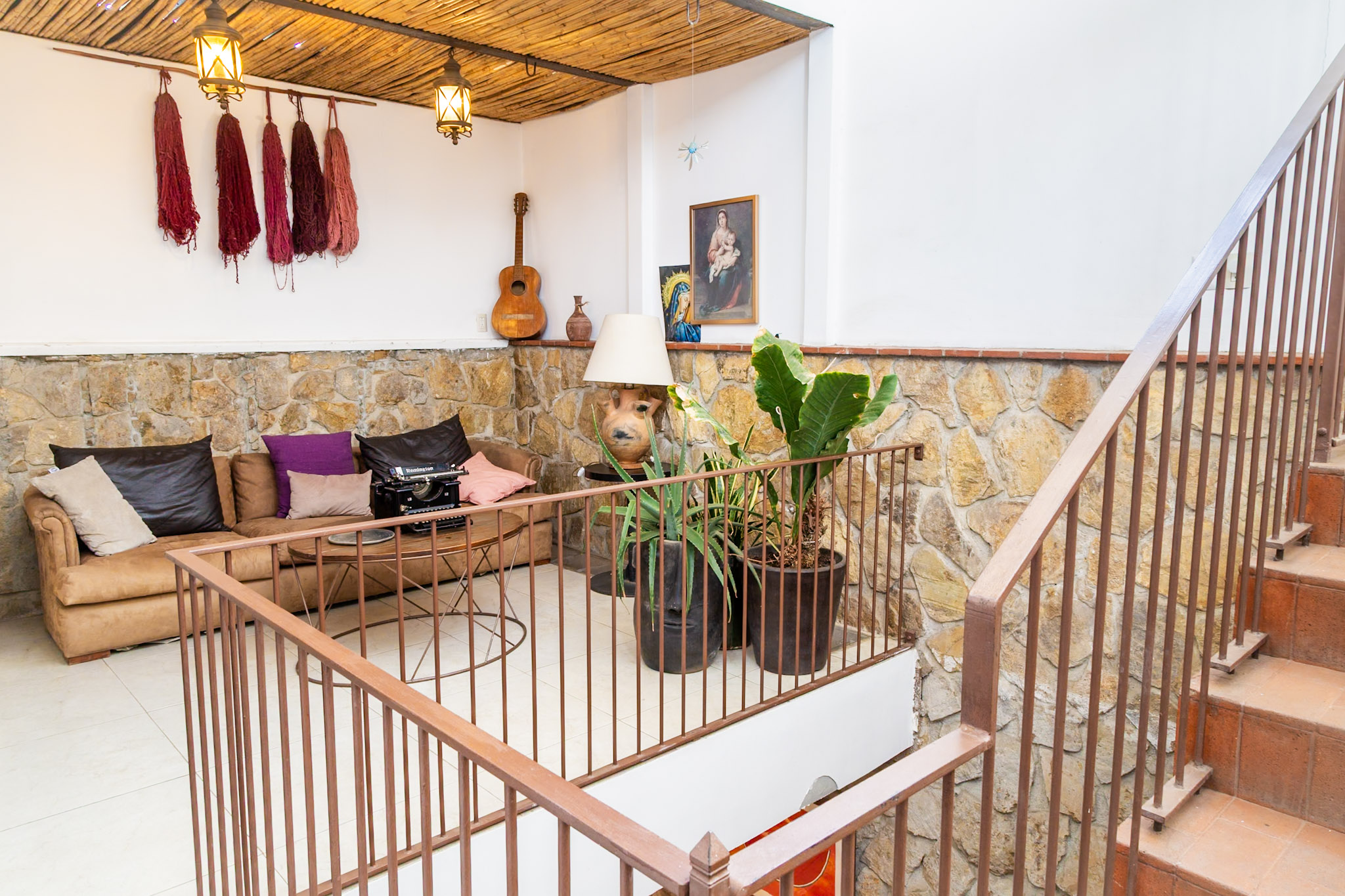 Junto a la Junior Suite, descubre una acogedora sala de descanso pensada para relajarte con calma y estilo. Este espacio íntimo, decorado con detalles artesanales y textiles oaxaqueños, cuenta con un cómodo sofá, iluminación tenue y una atmósfera perfecta para leer, tomar una copa de vino o simplemente dejar que el tiempo se detenga.