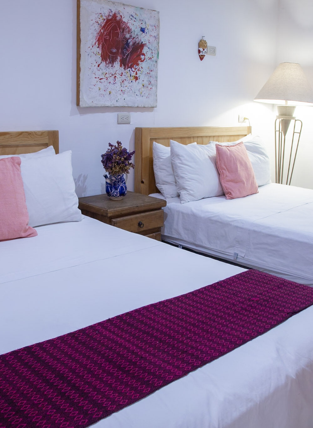 Disfruta de una cama king size con sábanas de algodón puro, dos baños privados totalmente decorados y amenidades naturales, además de una habitación con dos camas matrimóniales. Ideal para descansar después de recorrer la ciudad. La suite cuenta con aire acondicionado, ventiladores y frigo-bar Wi-Fi de alta velocidad, Smart TV y detalles únicos elaborados por artesanos locales que rinden homenaje a la riqueza cultural de Oaxaca.